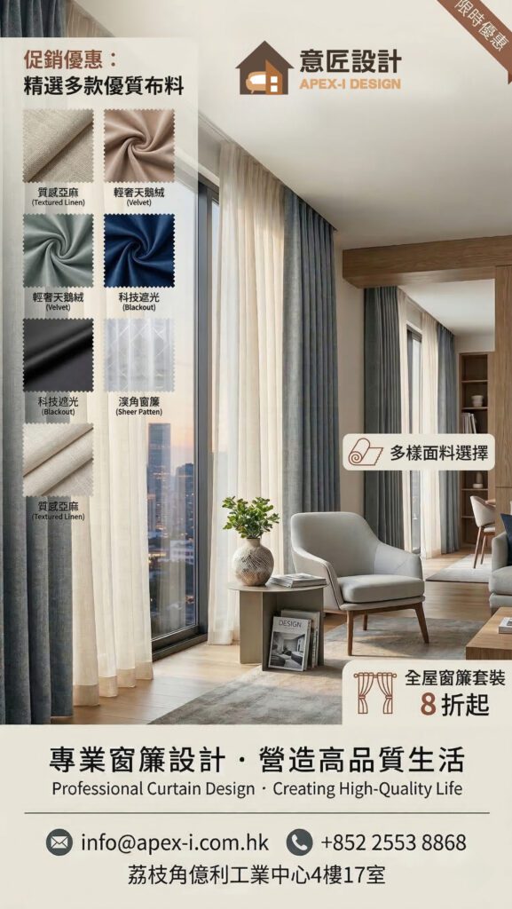 🎁 限時優惠: 凡於本月預約安裝,全屋窗簾套餐即享 8 折 優惠!